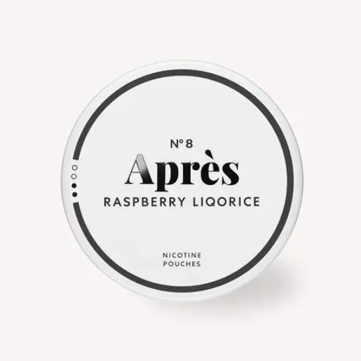 No.8 Après Raspberry Liqorice är en tobaksfri nikotinpåse som kombinerar en unik kombination av hallon och lakrits med regelbunden nikotinstyrka. Detta ger en smakrik och uppfriskande snusupplevelse som passar perfekt för användare som vill ha en jämn nikotinkick och en unik smak av hallon och lakrits.