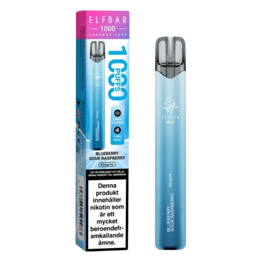 En spännande blandning av söta blåbär och syrliga hallon. Denna praktiska engångsvape är designad för att ge upp till 1000 bloss. Upplev den perfekta balansen mellan sött och surt och köp din Elfbar EB1000 Blueberry Sour Raspberry hos xsnus.se.