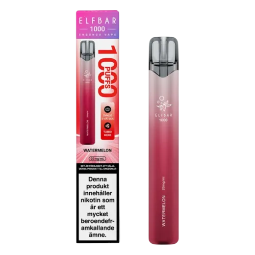 En otroligt uppfriskande och saftig smak av vattenmelon. Denna praktiska engångsvape är designad för att ge upp till 1000 bloss, perfekt för varma dagar. Köp din Elfbar EB1000 Watermelon hos xsnus.se.