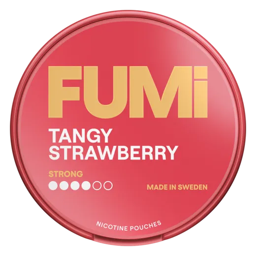 FUMi Tangy Strawberry Strong kombinerar den populära jordgubbssmaken med en starkare nikotinhalt. En kraftfull sommarfavorit på xsnus.se.