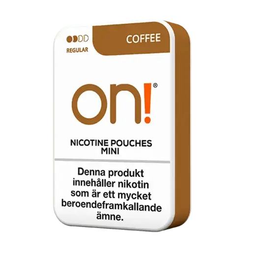 on! Coffee Regular erbjuder en rik kaffesmak med regelbunden nikotinstyrka i ett mini-format. Perfekt för användare som söker en aromatisk och uppfriskande snusupplevelse. Köp billigt online på xsnus.se och njut av 20 prillor per dosa.